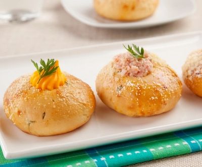 6. Abra as bolinhas e recheie com o creme de camarão.